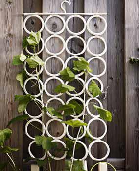 Uma solução parecida com a anterior, adoro a solução do cabide a servir de suporte a trepadeiras ! barato, eficaz e original !