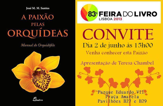 É hoje às 15.00 na Feira do Livro, vai seu uma honra para mim fazer a apresentação deste livro, não só porque o livro é excelente mas também porque gosto muito do autor José santos, profundo conhecedor de orquideas, plantas em gerla e jardinagem e uma pessoas fantástica, muito sabedor e muito generoro !