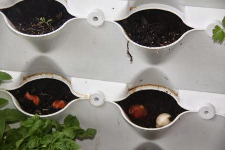 Depois foi a vez de plantar bolbos no Minigarden, é a primeira vez que vou experimentar. Limpei as plantações mortas de aromáticas